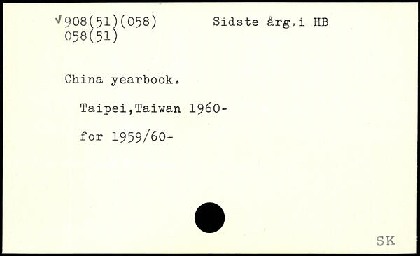 China yearbook. Taipei,Taiwan 1960-for 1959/6O-