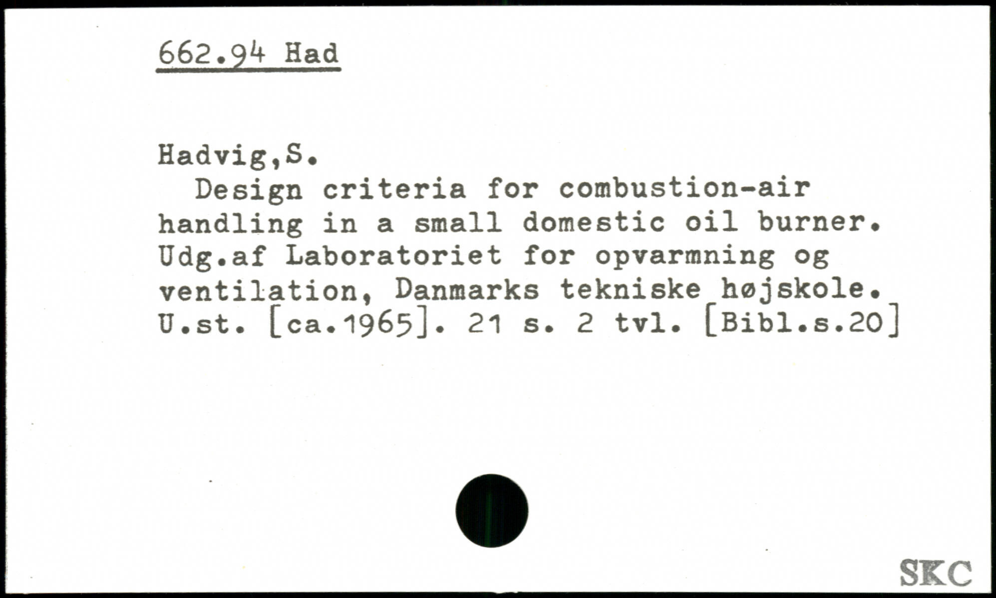 Design criteria for combustion-air handling in a small domestic oil burner. Udg.af Laboratoriet for opvarmning og ventilation, Danmarks tekniske højskole. U.st. [ca.19é5]