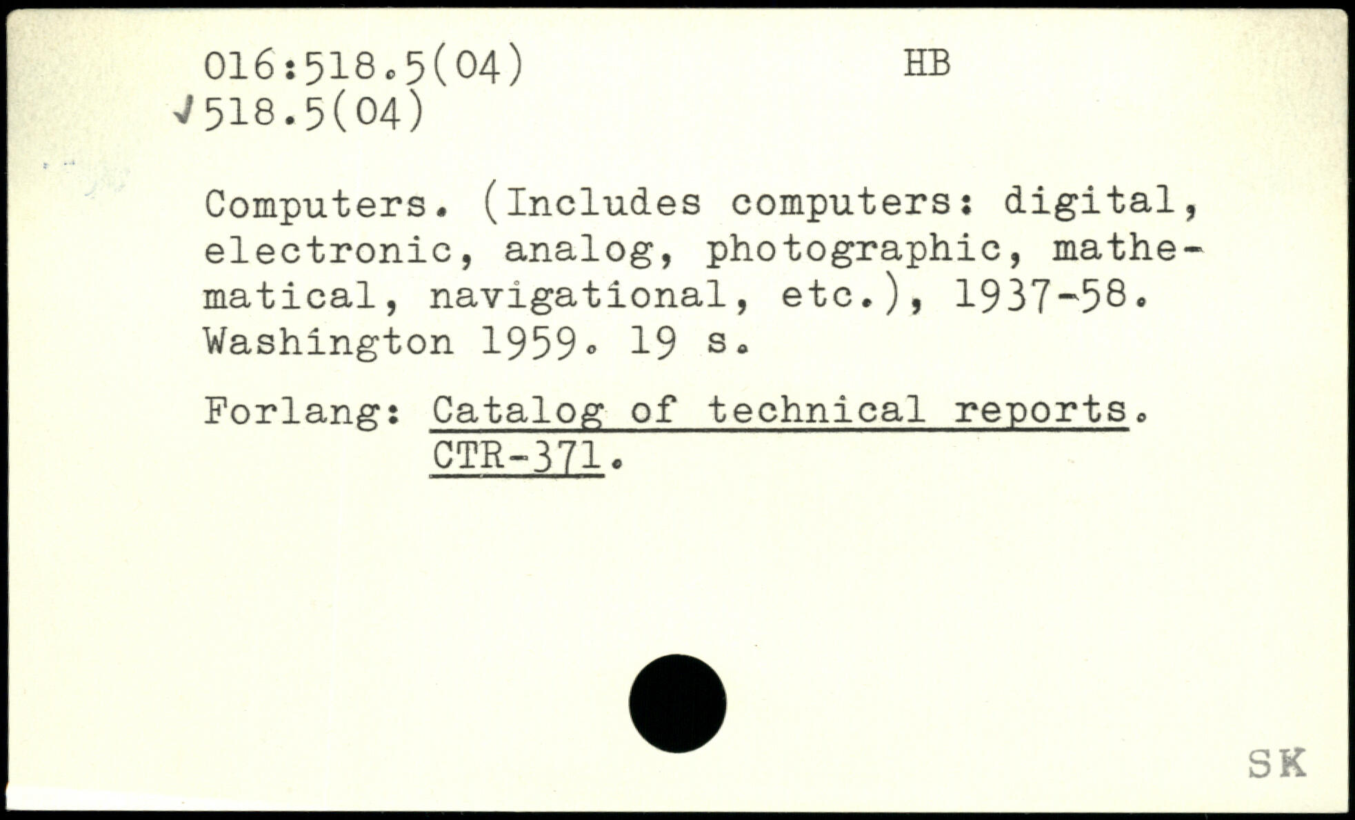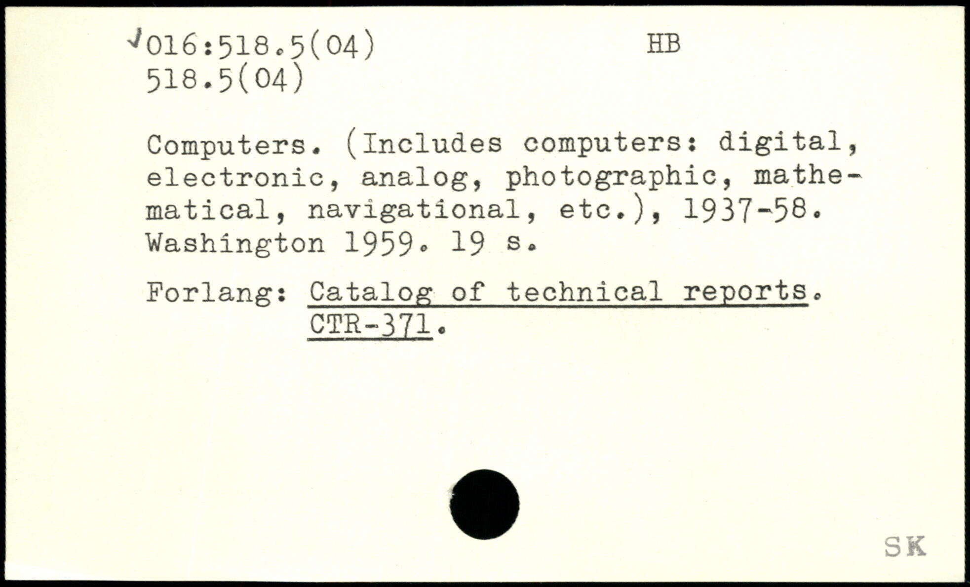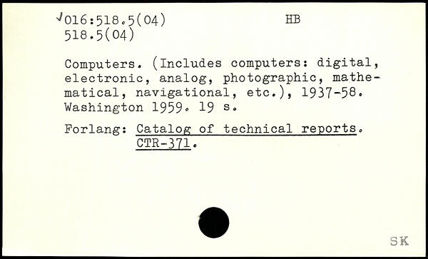 Computers, (includes computers: digital, electronic, analog, photographic, mathematical, navigational, etc.), 1937-58