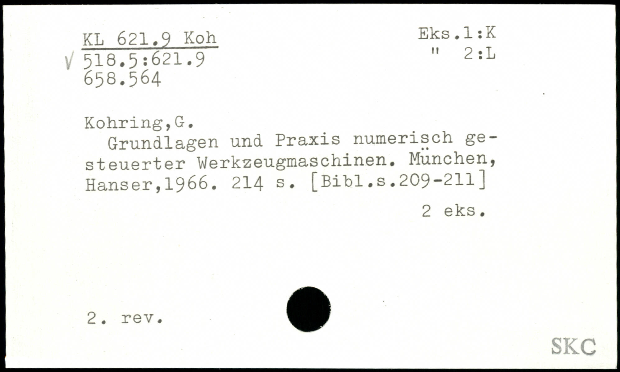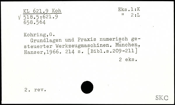 Grundlagen und Praxis numerisch gesteuerter Werkzeugmaschinen, München^ Hanser,1966.