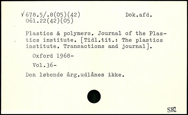 Plastics & polymers. Journal of the Plas-, tics institute. [Tidl.tit.: The plastics institute. Transactions and journal]