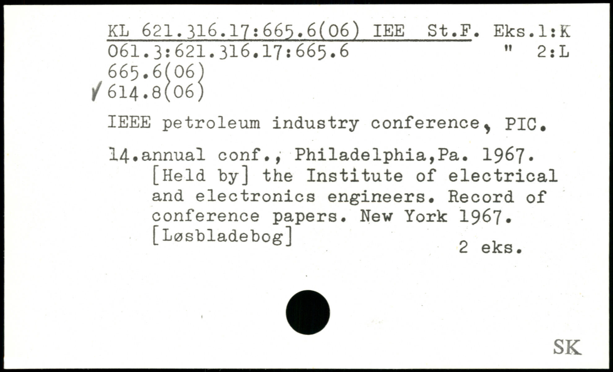 IEEE petroleum industry conference^ PIC. I4,annual conf., Philadelphia,Pa. 1967.