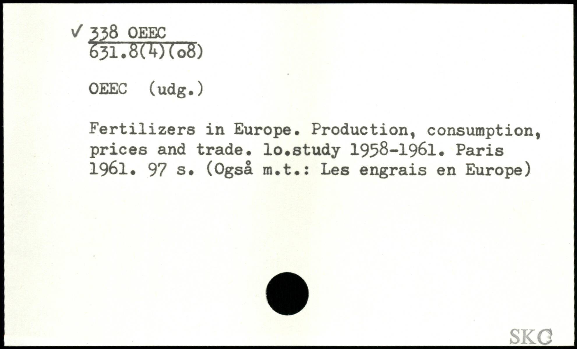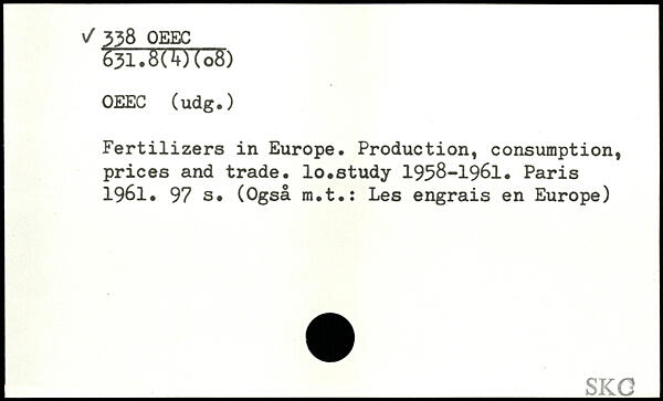 Fertilizers in Europe. Production, consumption, prices and trade, lo.study 1938-1961.