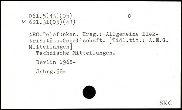 AEG-Telefunken. Hrsg.: Allgemeine Elektricitäts-Gesellschaft.