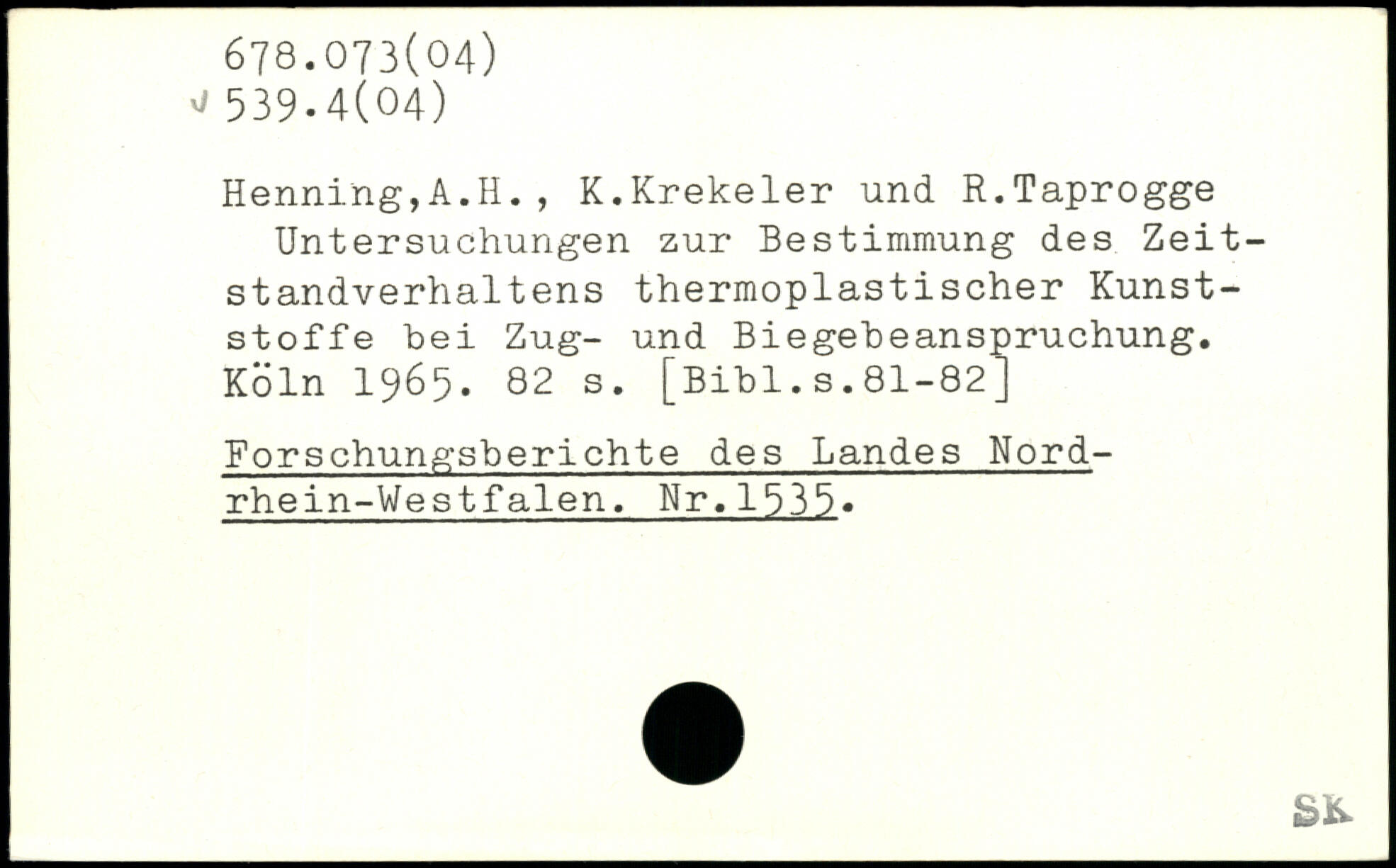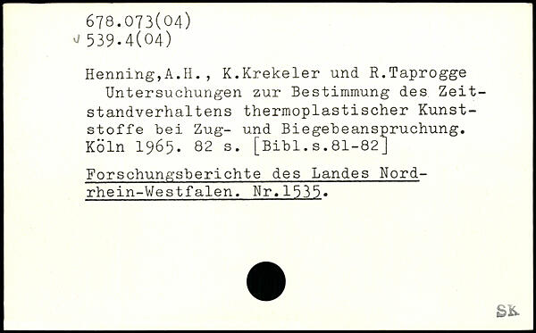 Henning,A.H. , K.Krekeler und. R.Taprogge Untersuchungen zur Bestimmung des Zeitstandverhaltens thermoplastischer Kunststoffe bei Zug- und Biegebeanspruchung.