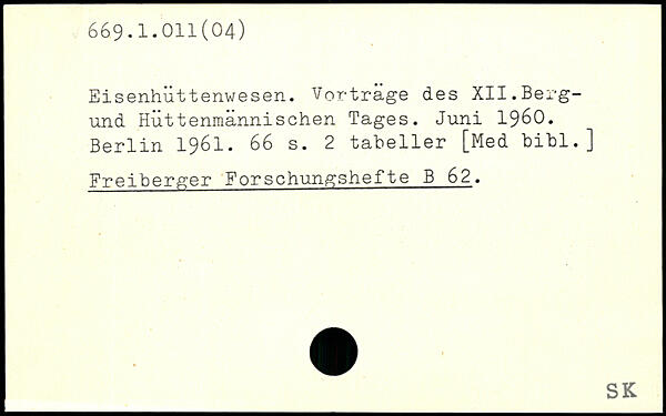 Eisenhuttenwesen. Vortrage des XII.Berg-und Hüttenmännischen Tages. Juni 1960.