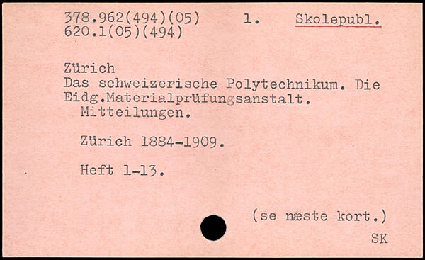 Das schweizerische Polytechnikum. Die Eidg.Materialprüfungsanstalt. Mitteilungen. Zürich 1884-1909. Heft 1-13. .(se næste kort.)