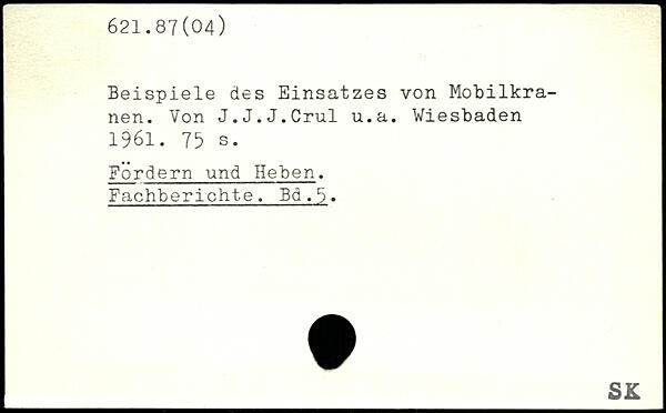 Beispiele des Einsatzes von Mobilkranen. Von J.J.J.Crul u.a. Wiesbaden 1961.