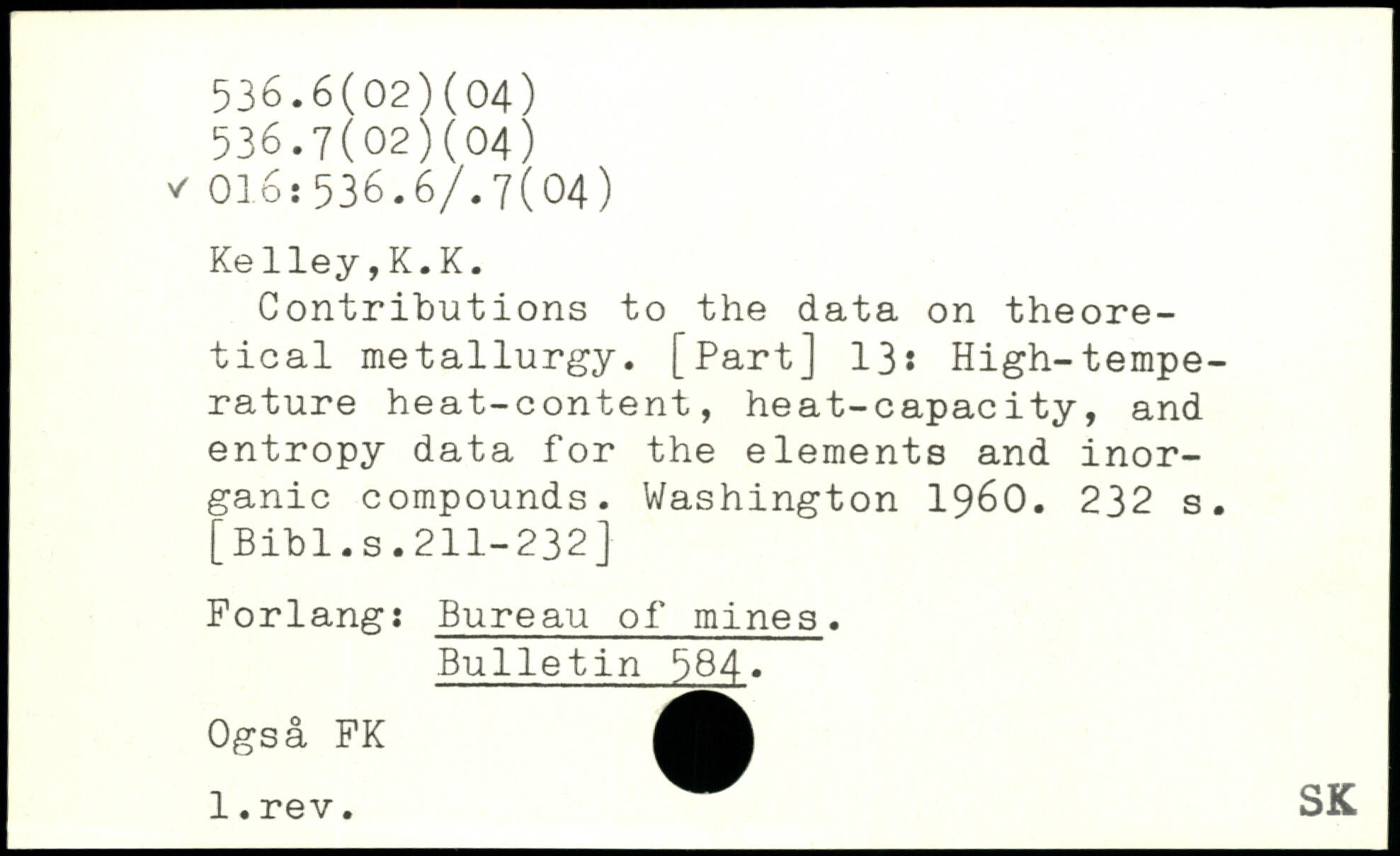 Contributions to the data on theoretical metallurgy. [Part] 13: High-temperature heat-content, heat-capacity, and entropy data for the elements and inorganic compounds.