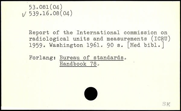 Report of the International commission on radiological units and measurements (ICRU) 1959®