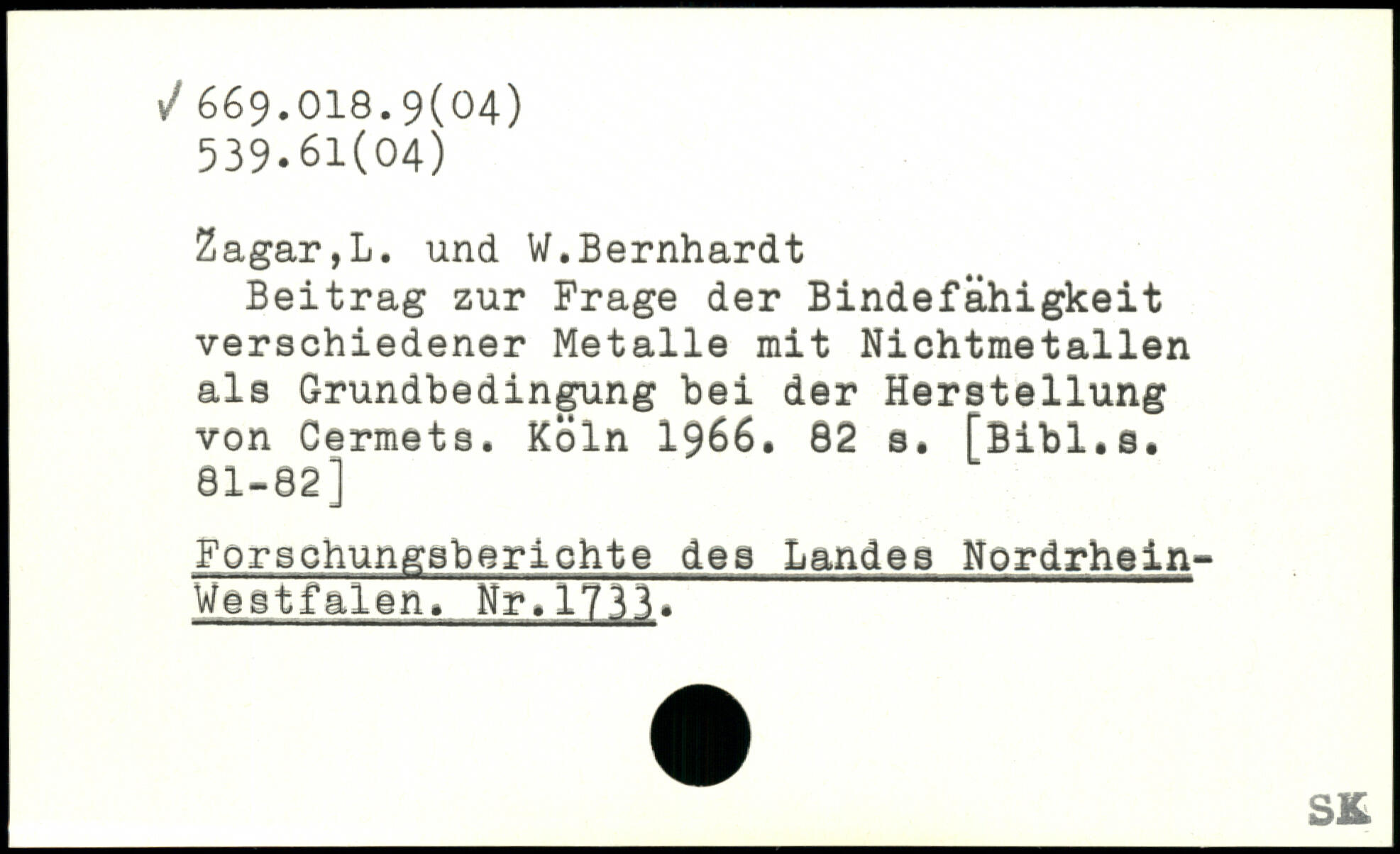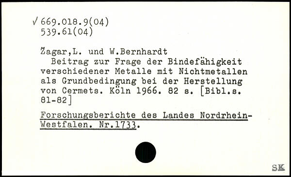 Beitrag zur Frage der Bindefähigkeit verschiedener Metalle mit Nichtmetallen als Grundbedingung bei der Herstellung von Cermets.