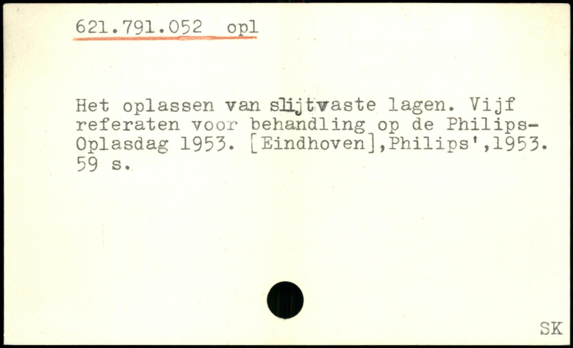 Het oplassen van sügtvaste lagen. Vijf referaten voor behandling op de Philips-Oplasdag 1953. [Eindhoven],Philips1953.