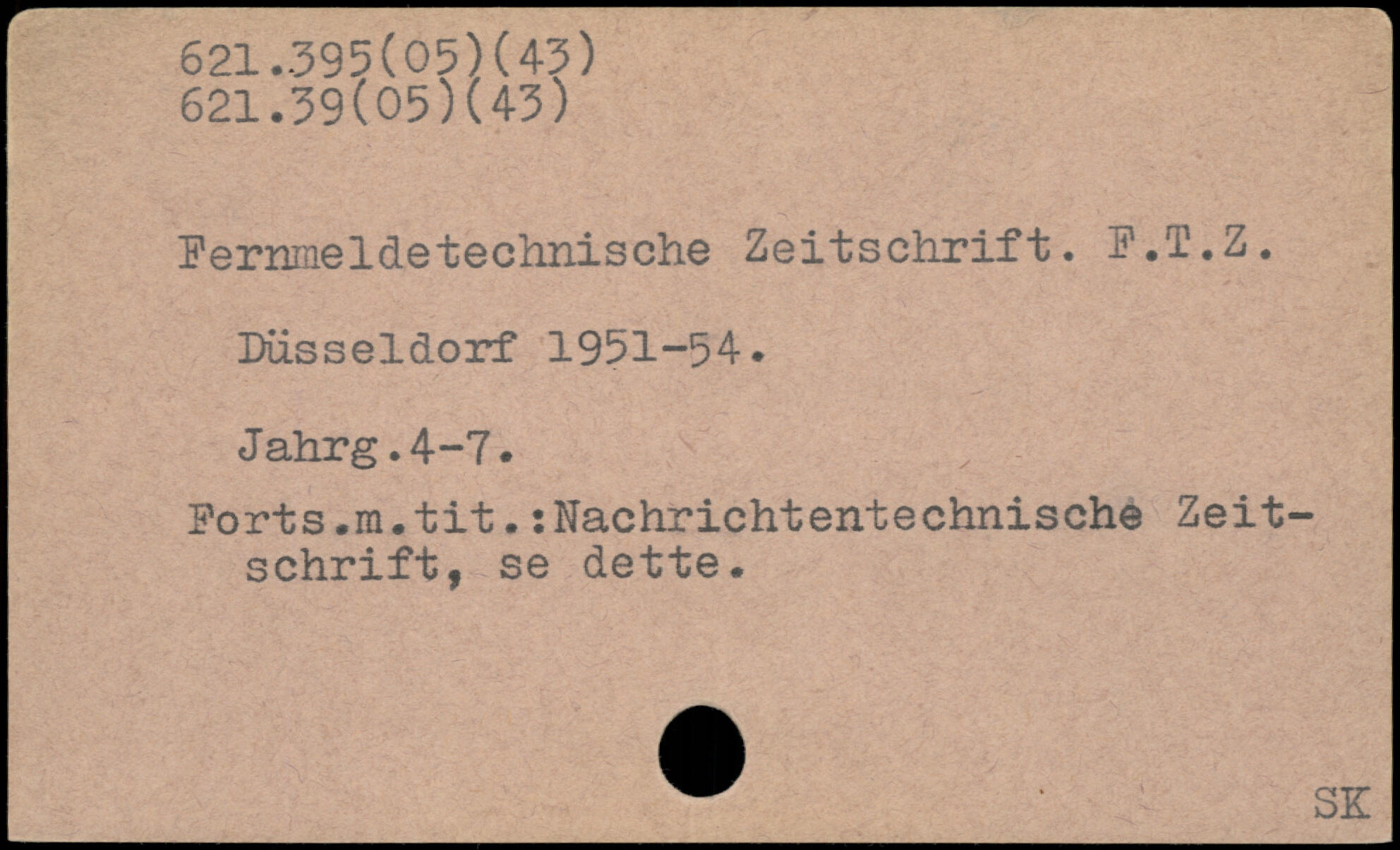 Fernmeldetechnische Zeitschrift. F.i'.Z. Düsseldorf 1951-54. Jahrg.4-7. Forts.m.tit.:Nachrichtentechnische Zeitschrift, se dette.