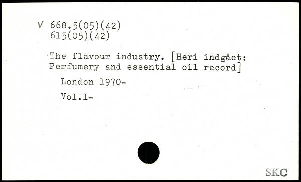 The flavour industry. [Heri indgået: Perfumery and essential oil record]