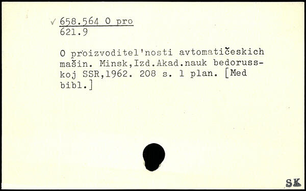 0 pr'oizvoditel ’ nosti avtomaticeskich masin. Minsk,Izd.Akad.nauk bedoruss-koj SSR,1962.