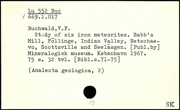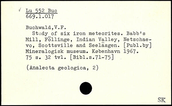 Study of six iron meteorites. Babb's Mill, Föllinge, Indian Valley, Netschae-vo, Scottsville and Seelasgen.
