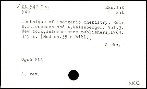 Technique of inorganic chemistry. Ed.: H.B.Jonassen and A.Weissherger.