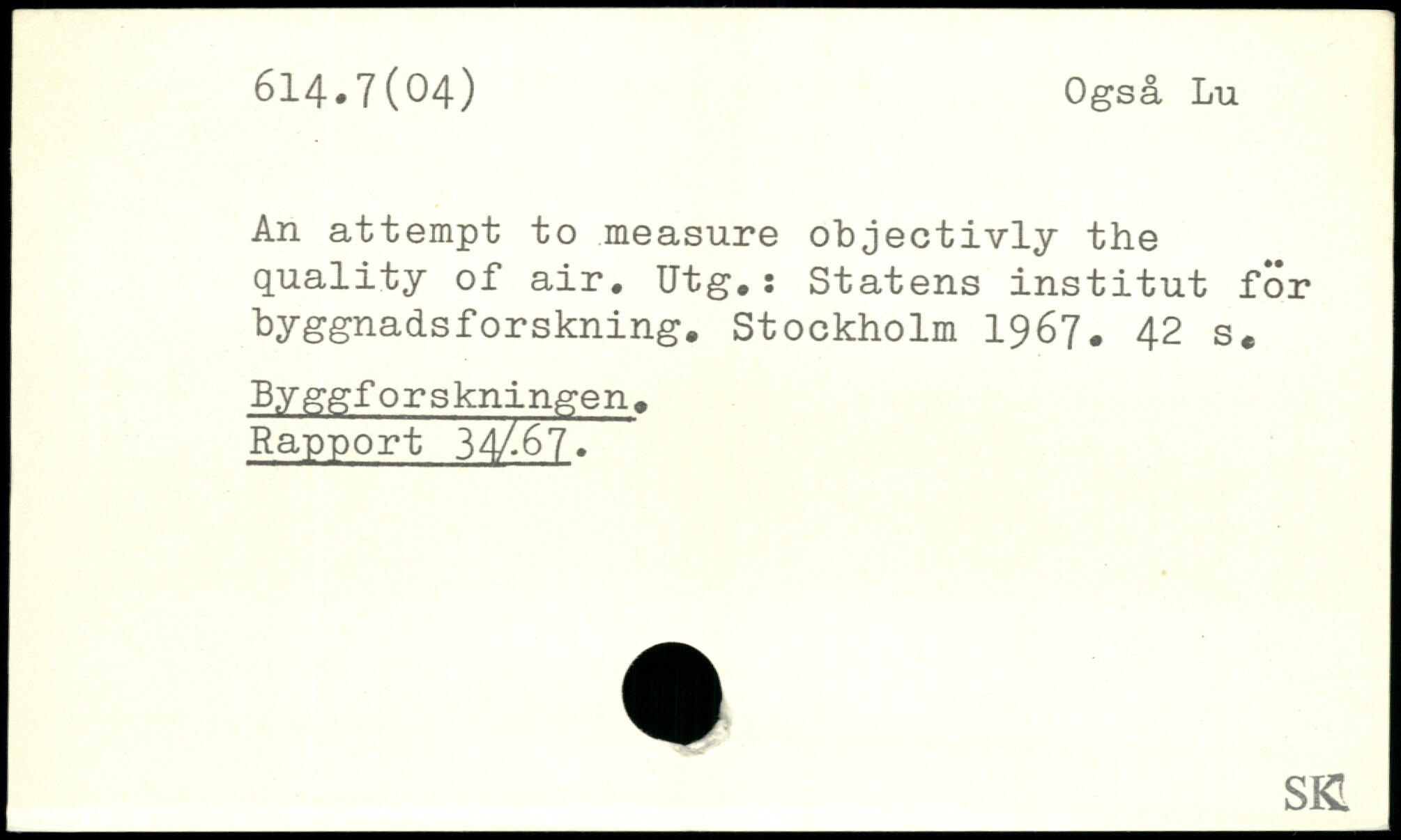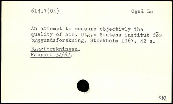 An attempt to measure objectivly the quality of air. Utg. : Statens institut for byggnadsforskning.