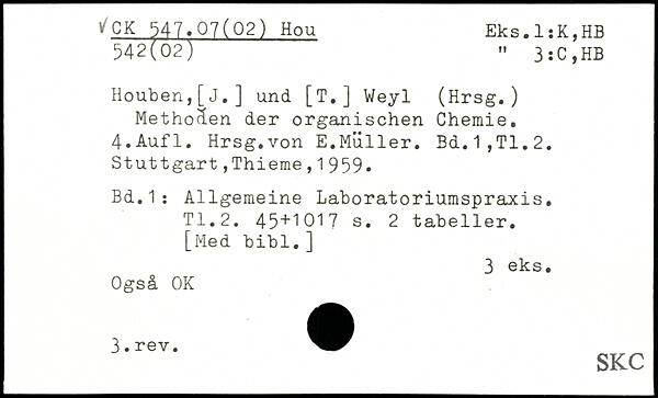Houben,[j.] and [T.] Weyl (Hrsg.) Methoden der organischen Chemie.