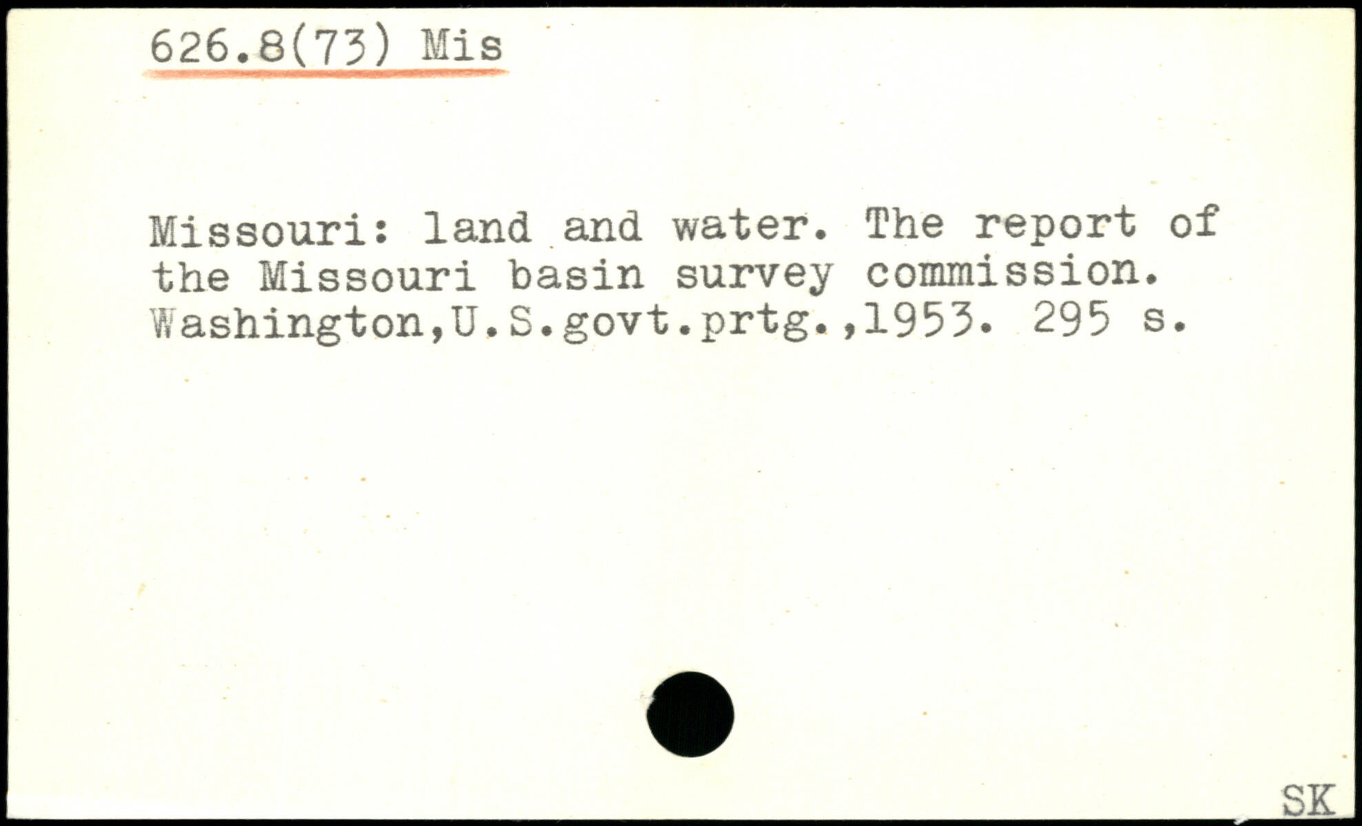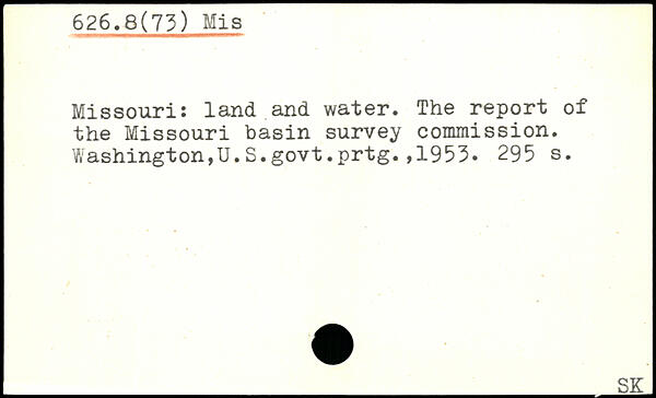 Missouri: land and water. The report of the Missouri basin survey commission. Washington,U.S.govt.prtg.,1953.