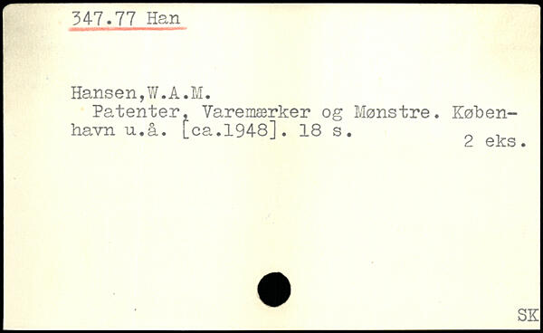 Patenter, Varemærker og Mønstre. København u.å. [ca.1948].