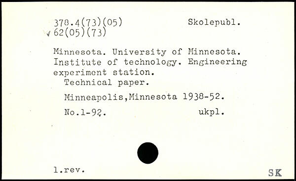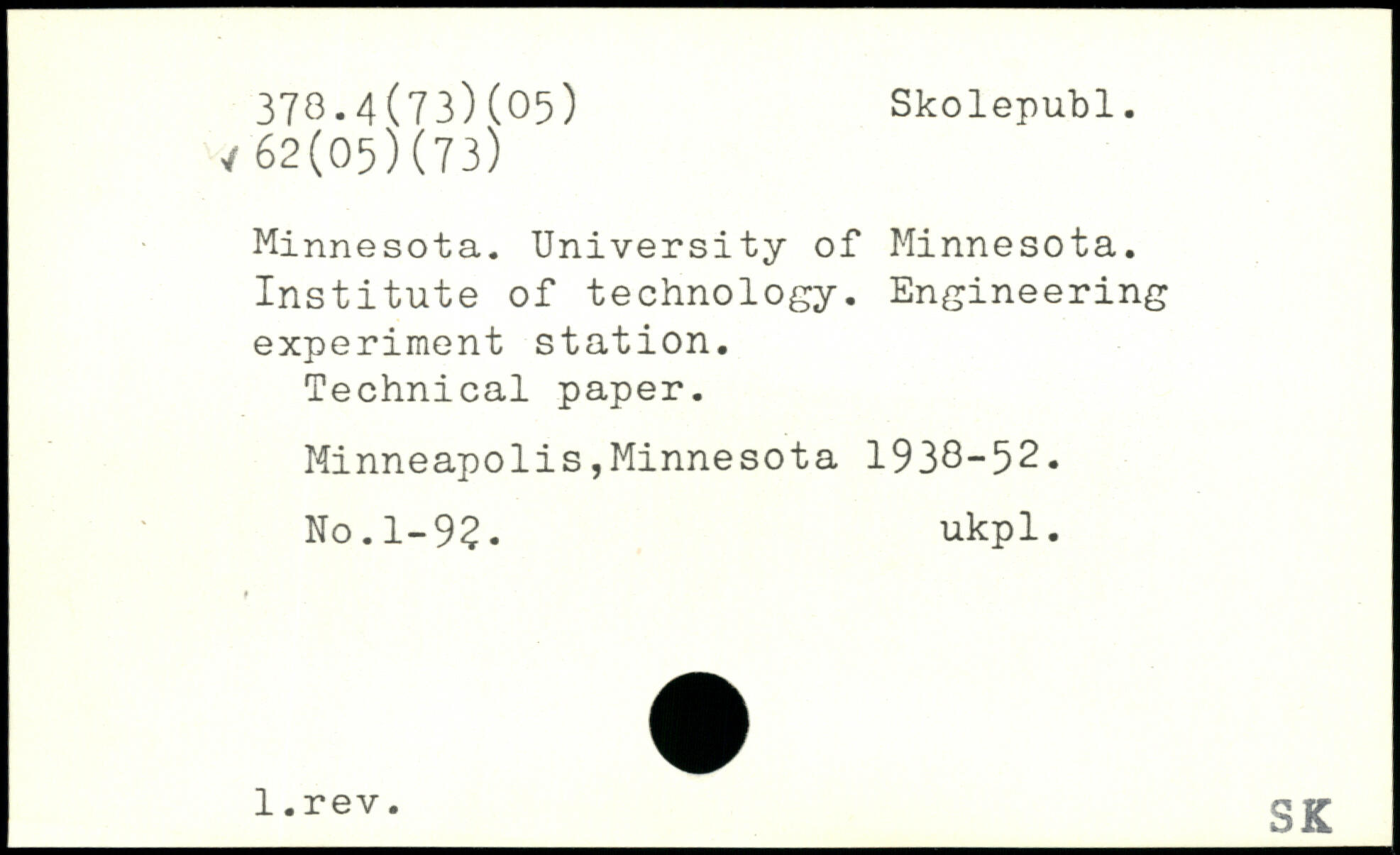 Minnesota. University of Minnesota. Institute of technology. Engineering experiment station. Technical paper. Minneapolis,Minnesota 1938-52. No.1-92. ukpl. _1-rev-_SK