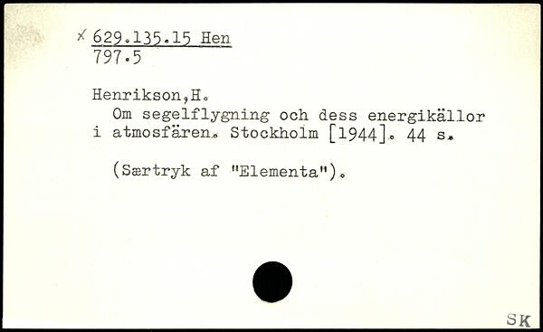 Om segelflygning och dess energikällor i atmosfären. Stockholm
