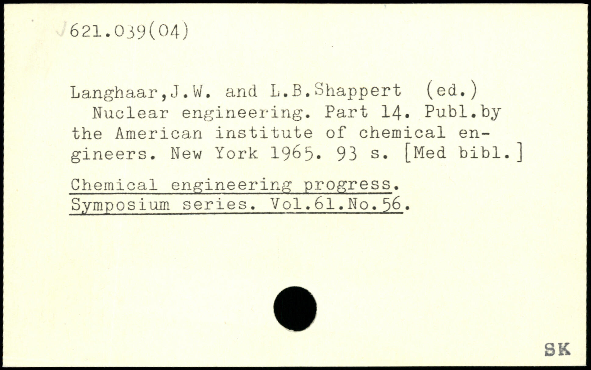 Langhaar, J. W. arid L.B.Shappert (ed.) Nuclear engineering. Part 14.