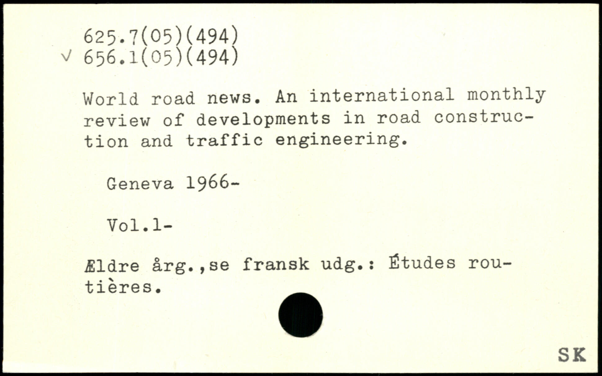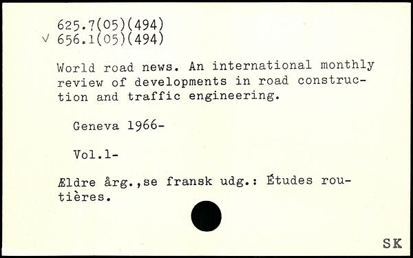 World road news. An international monthly review of developments in road construction and traffic engineering.