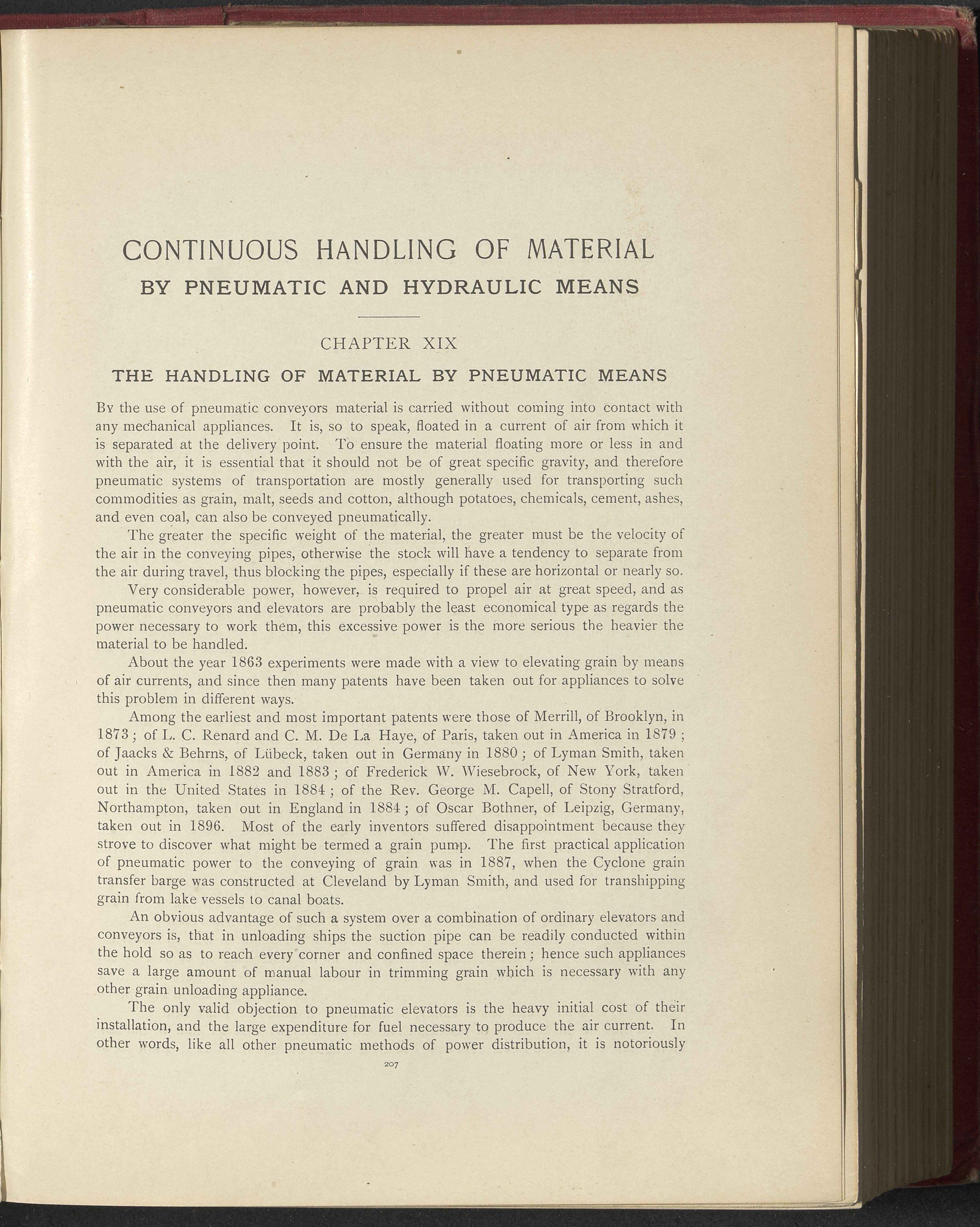of pneumatic power to the conveying of grain was in 1887, when the Cyclone grain