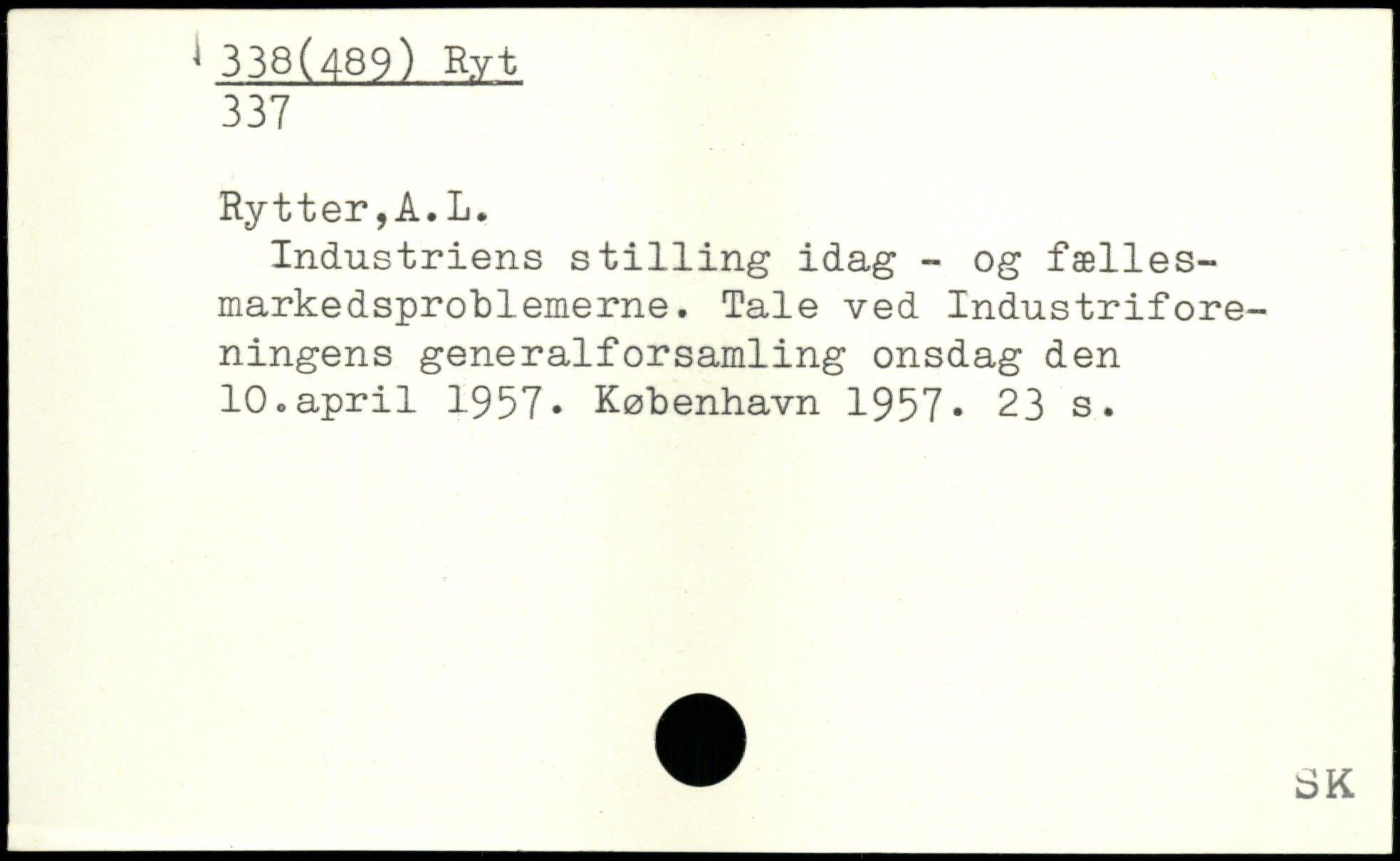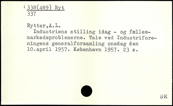 Industriens st1111ng idag - og fællesmarkedsproblemerne. Tale ved Industriforeningens generalforsamling onsdag den 10.april 1957.
