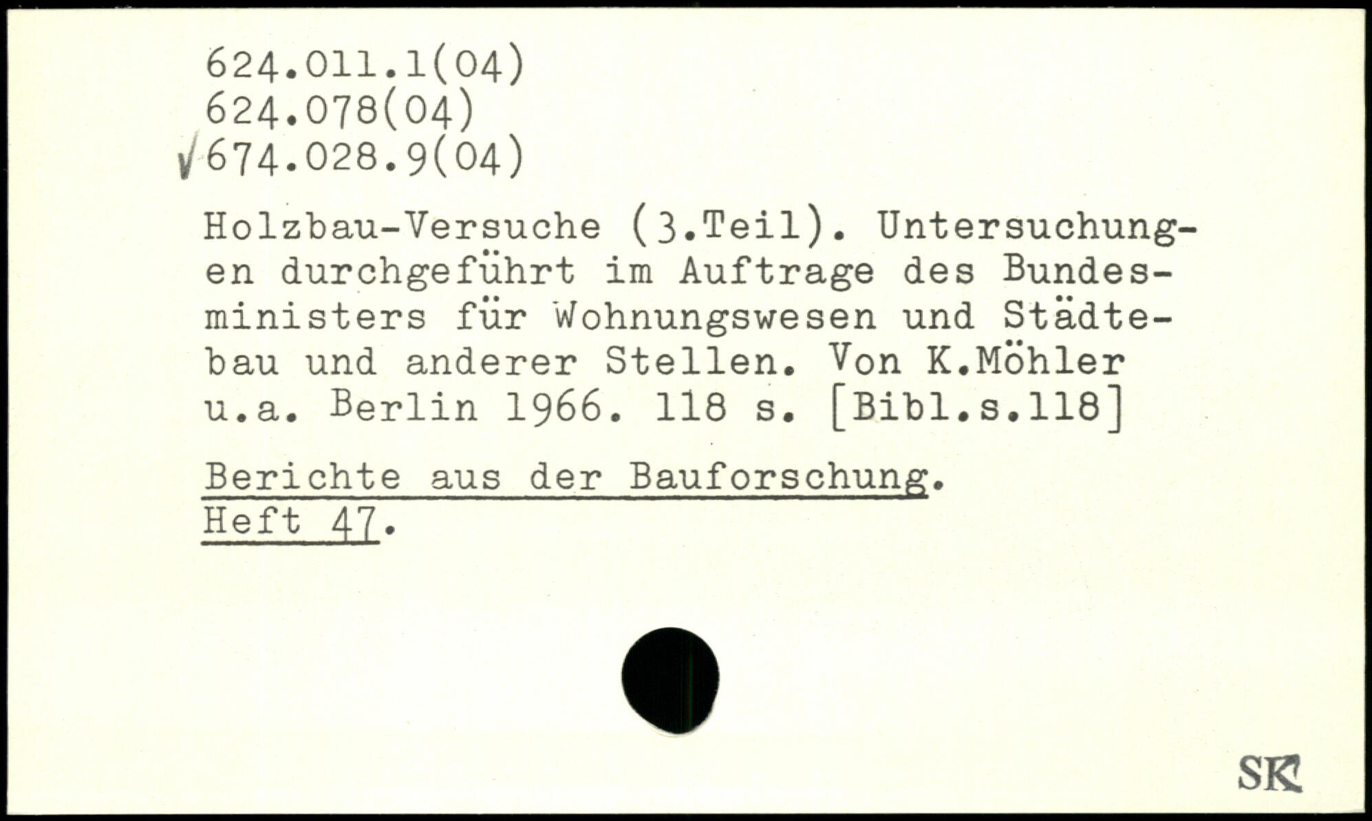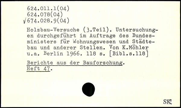 Holzbau-Versuche (3.Teil). Untersuchungen durchgeführt im Aufträge des Bundesministers für Wohnungswesen und Städtebau und anderer Stellen. Von K.Möhler u.a.