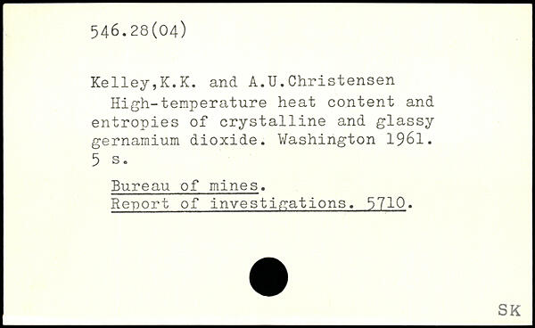 Kelley,K.K. and A.U.Christensen High-temperature heat content and entropies of crystalline and glassy gernamium dioxide.
