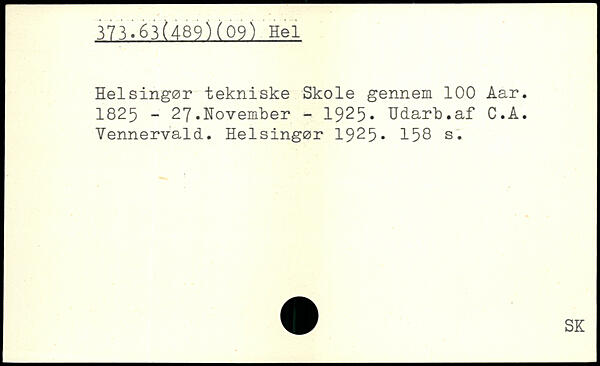 Helsingør tekniske Skole gennem 100 Aar. 1825 - 27.November - 1925. Udarb.af C.A. Yennervald. Helsingør 1925.