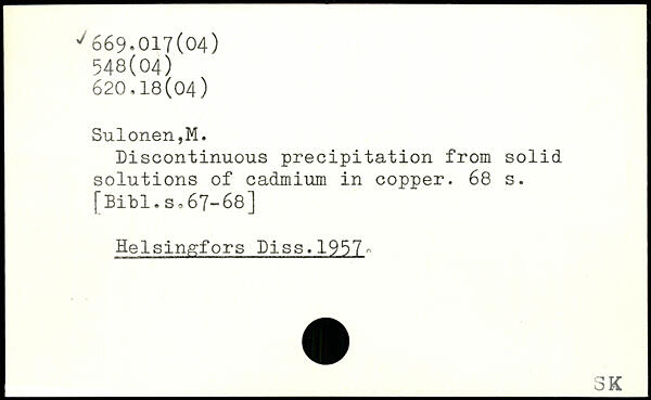 Discontinuous precipitation from solid solutions of cadmium in copper.