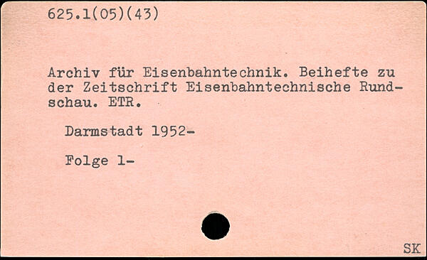 Archiv für Eisenbahntechnik. Beihefte zu der Zeitschrift Eisenbahntechnische Rundschau. ETR. Darmstadt 1952- Eolge 1-