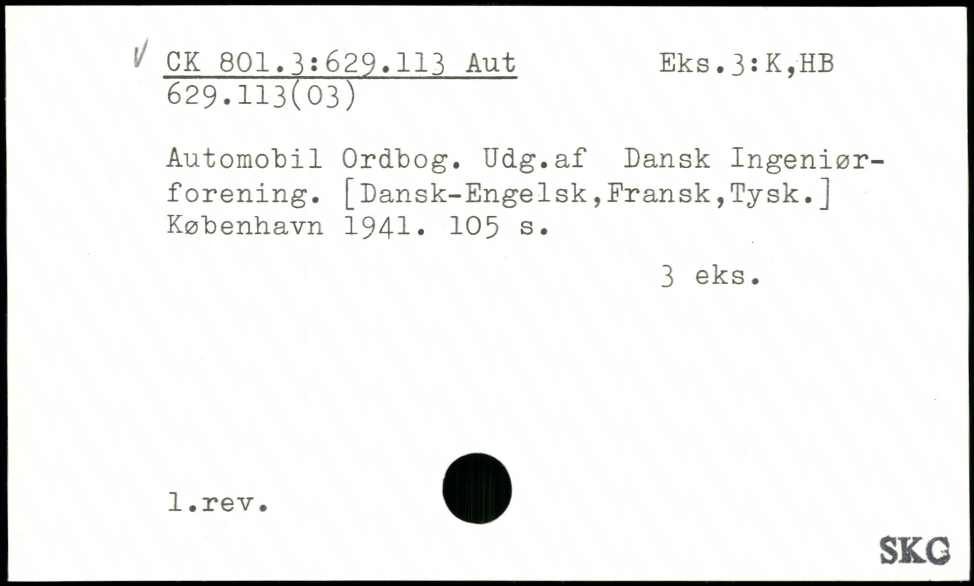 Automobil Ordbog. Udg.af Dansk Ingeniørforening.