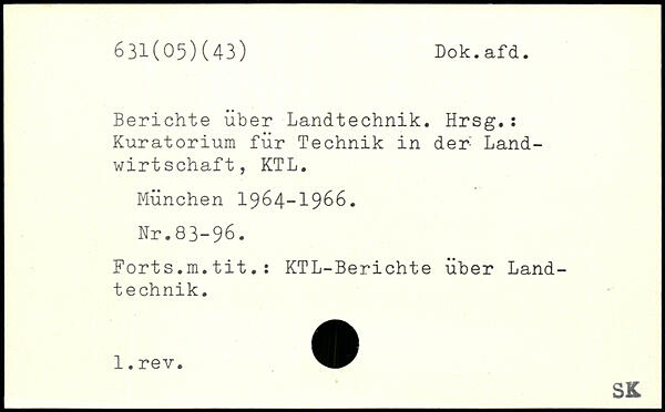 Berichte über Landtechnik. Hrsg.: Kuratorium für Technik in der Landwirtschaft, KTL.