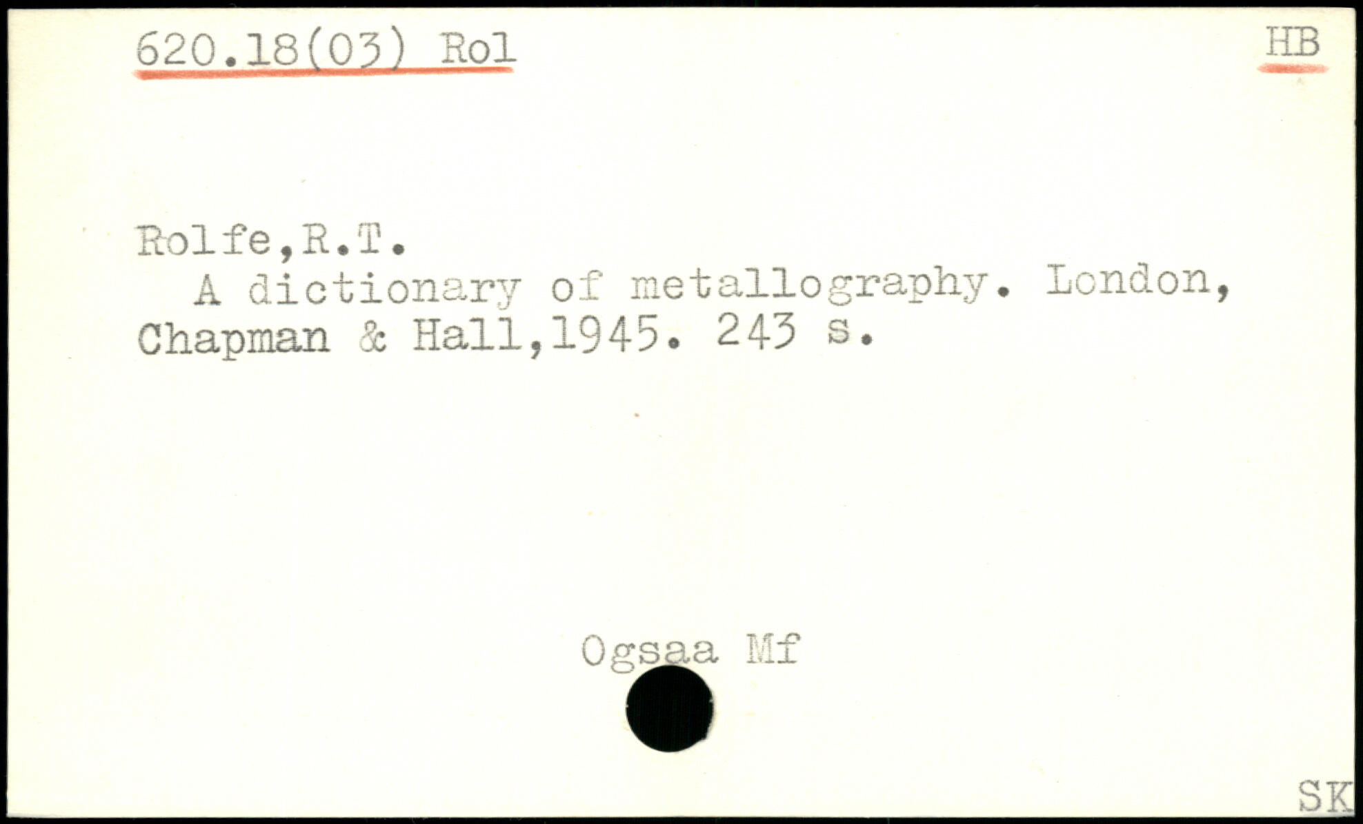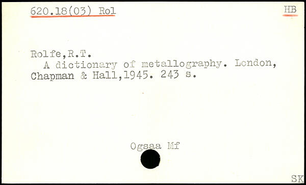 Rol f e, R. T. A dictionary of metallography. London, Chapman 3c Hall, 1945.