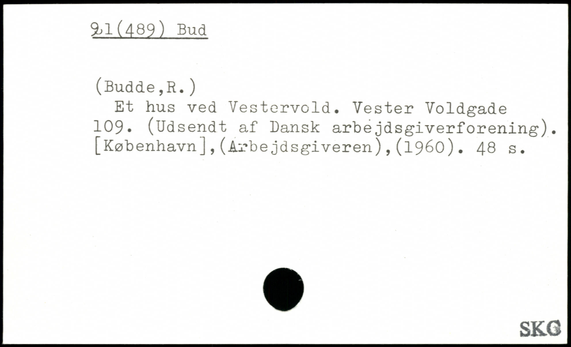 Et hus ved Vestervold. Vester Voldgade 109, (Udsendt af Dansk arbejdsgiverforening). [København],(Arbejdsgiveren),(1960).