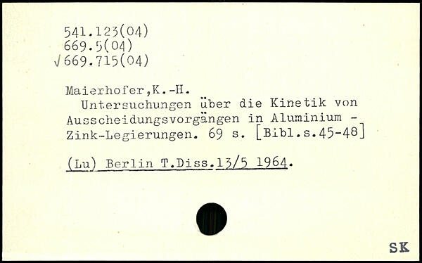 Maierhof er ,K. -II. Untersuchungen über die Kinetik von Ausscheidungsvorgängen in Aluminium -Zink-Legierungen.