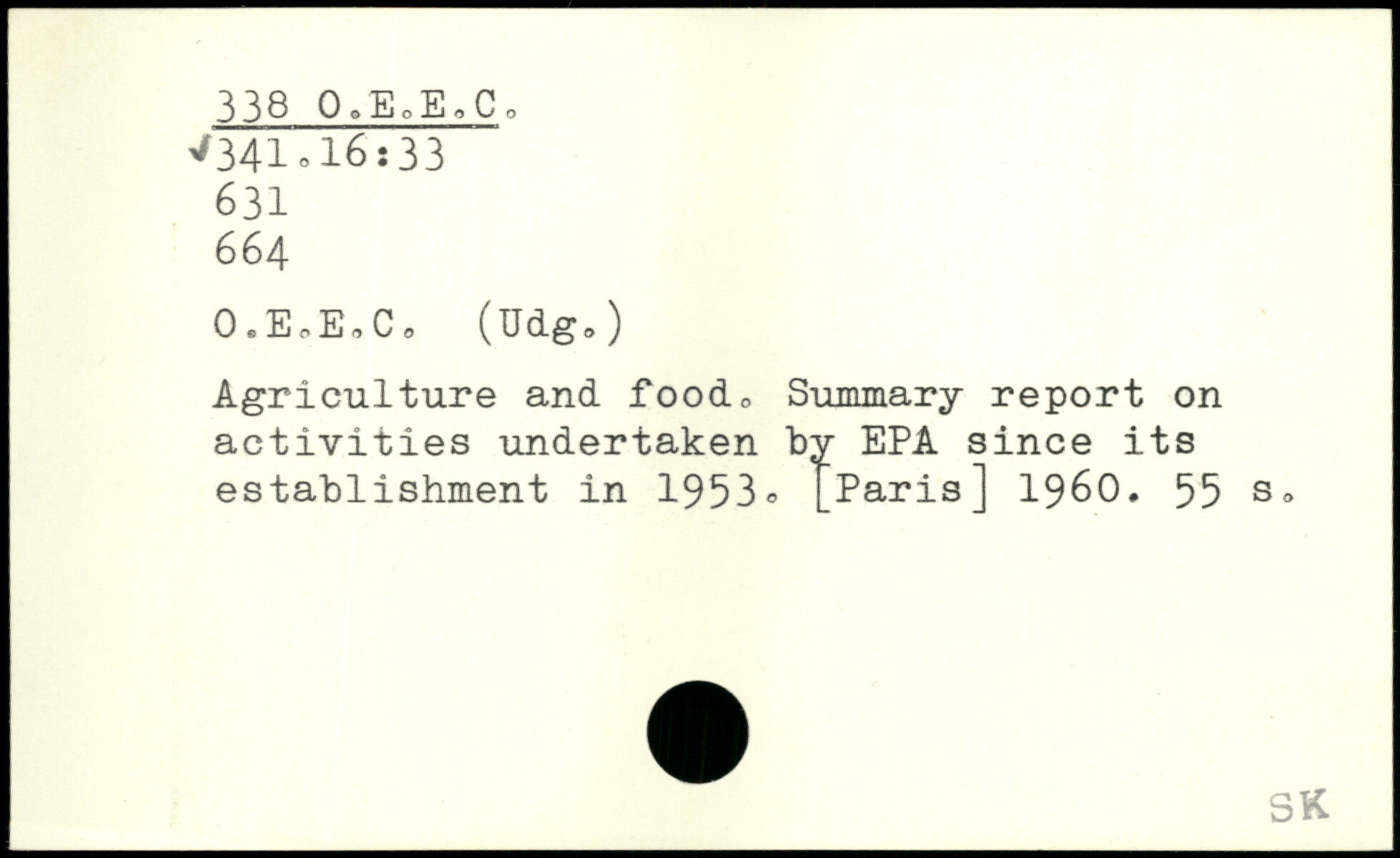 O.EoE,C0 (üdg,) Agriculture and foods Summary report on activities undertaken by EPA since its establishment in 1953=