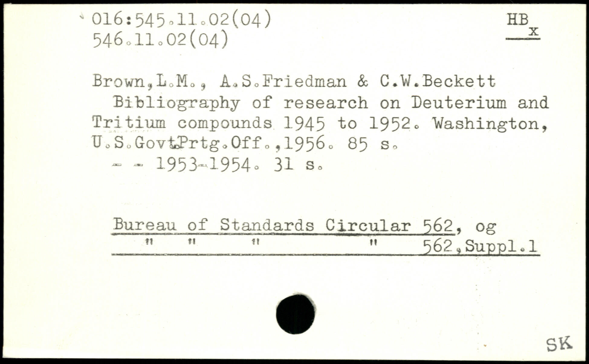Brown,L0M0, ÅaSoFriedman & C.W.Beckett Bibliography of research on Deuterium and Tritium compounds 1945 to 1952