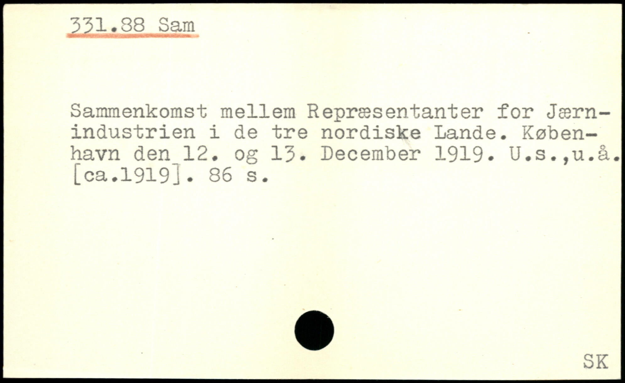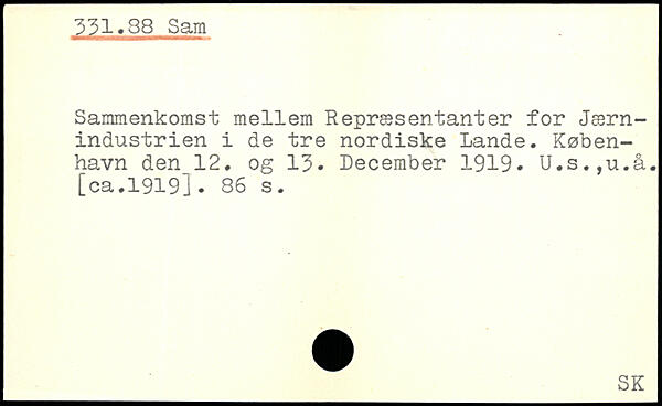 Sammenkomst mellem Repræsentanter for Jærn-industrien i de tre nordiske Lande. København den_12. og 13- December 1919. U.s.,u.å. [ca.1919j.