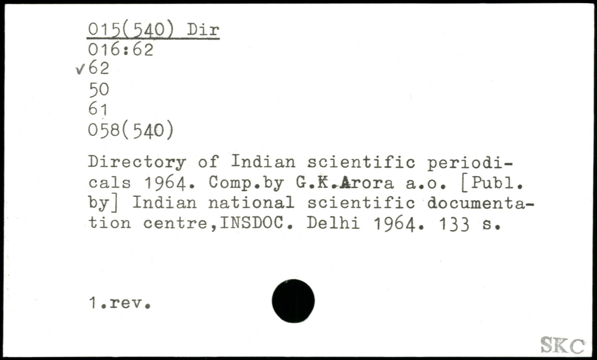 Directory of Indian scientific periodicals 1984, Comp.by G.K.Arora a.o.