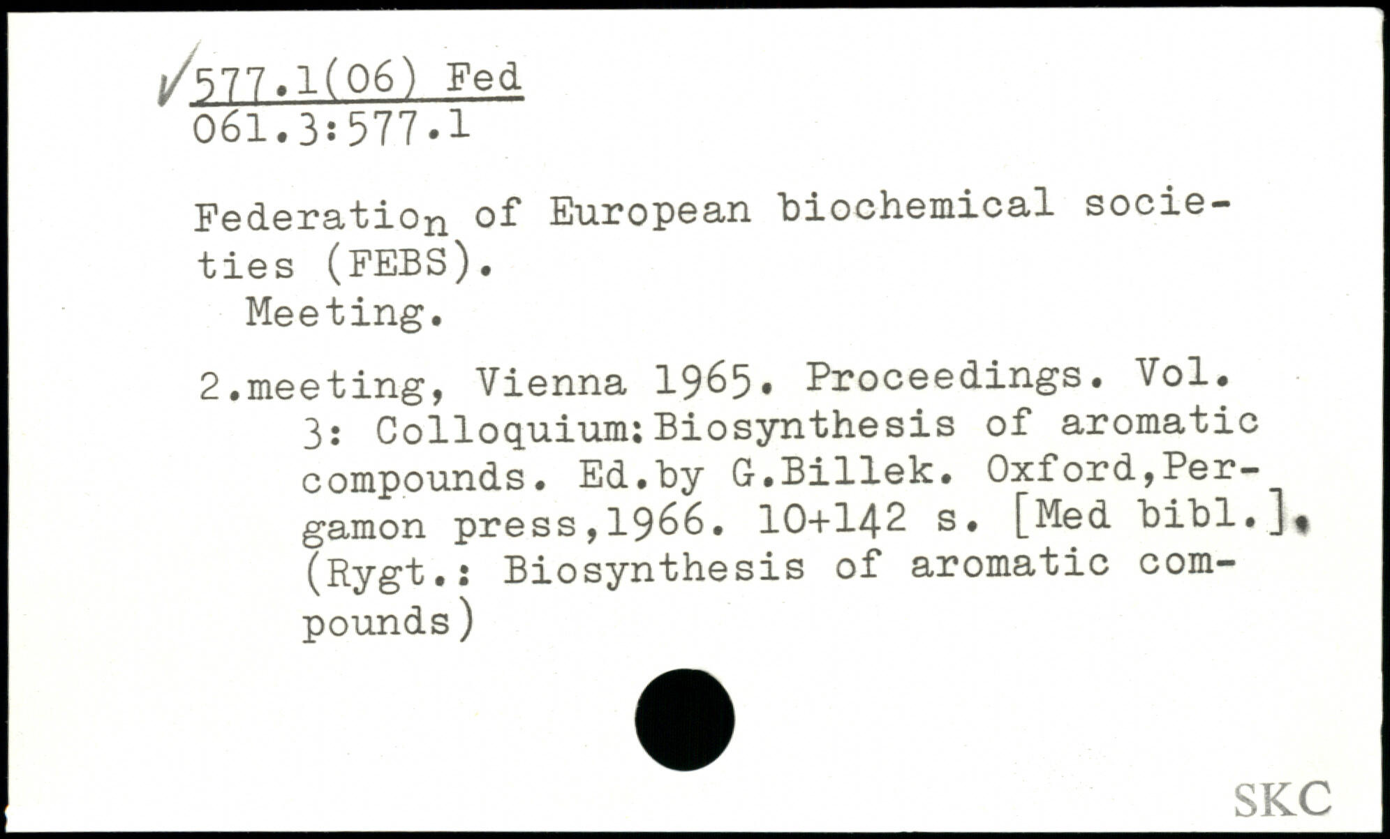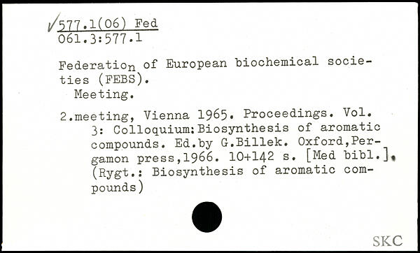 Federation of European "biochemical societies (febs). Meeting. 2.meeting, Vienna 1965. Proceedings. Vol. 3: Colloquium;Biosynthesis of aromatic compounds. Ed.by G.Billek. Oxford,Per-gamon press, 19^6. 10+14-