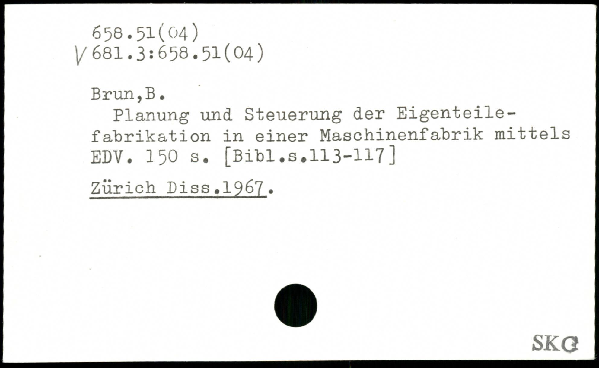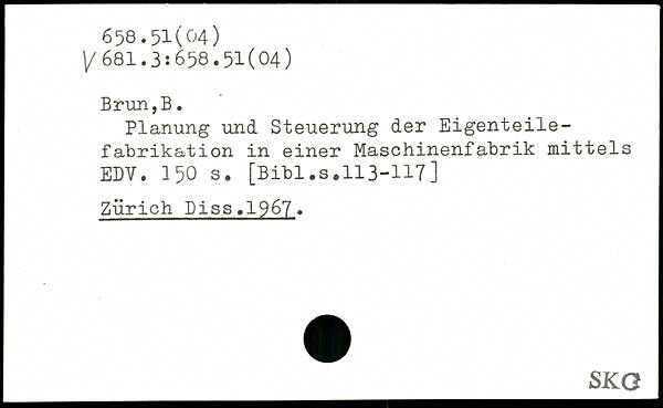 Planung und Steuerung der Eigenteilefabrikation in einer Maschinenfabrik mittels EDV.