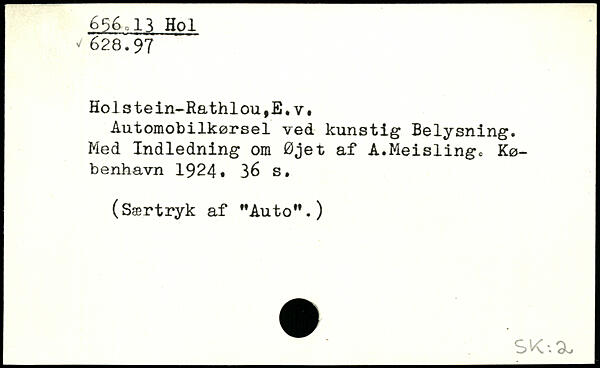 Holstein-Rathlou,E.v, Automobilkørsel ved kunstig Belysning. Med Indledning om Øjet af A.Meislingc