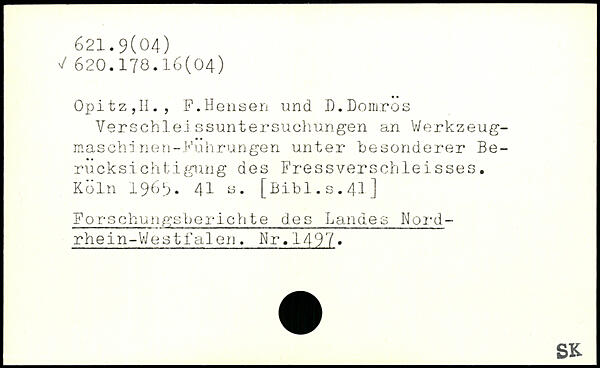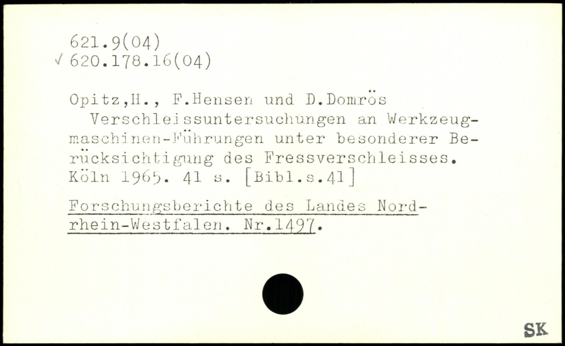 Verschlejssuntersuchungen an Werkzeug-maschi nen-I'uhrungen unter besonderer Berücksichtigung des Fressverschleisses.
