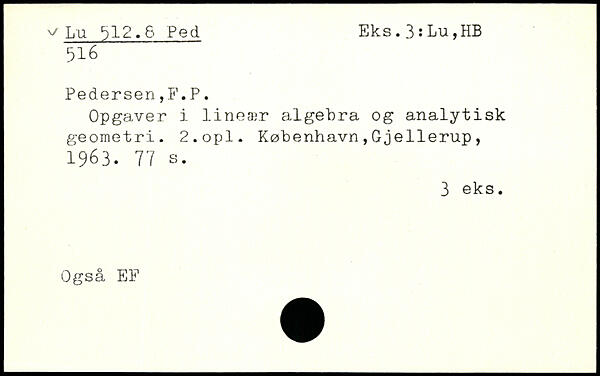 Opgaver i lineær algebra og analytisk geometri. 2.opl.